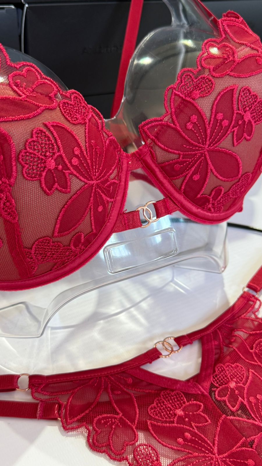 SOUTIEN SOFT CON ARO, SIN BASE, CON ACCESORIO EN CENTRO Y LESS REGULABLE DE TUL BORDADO.