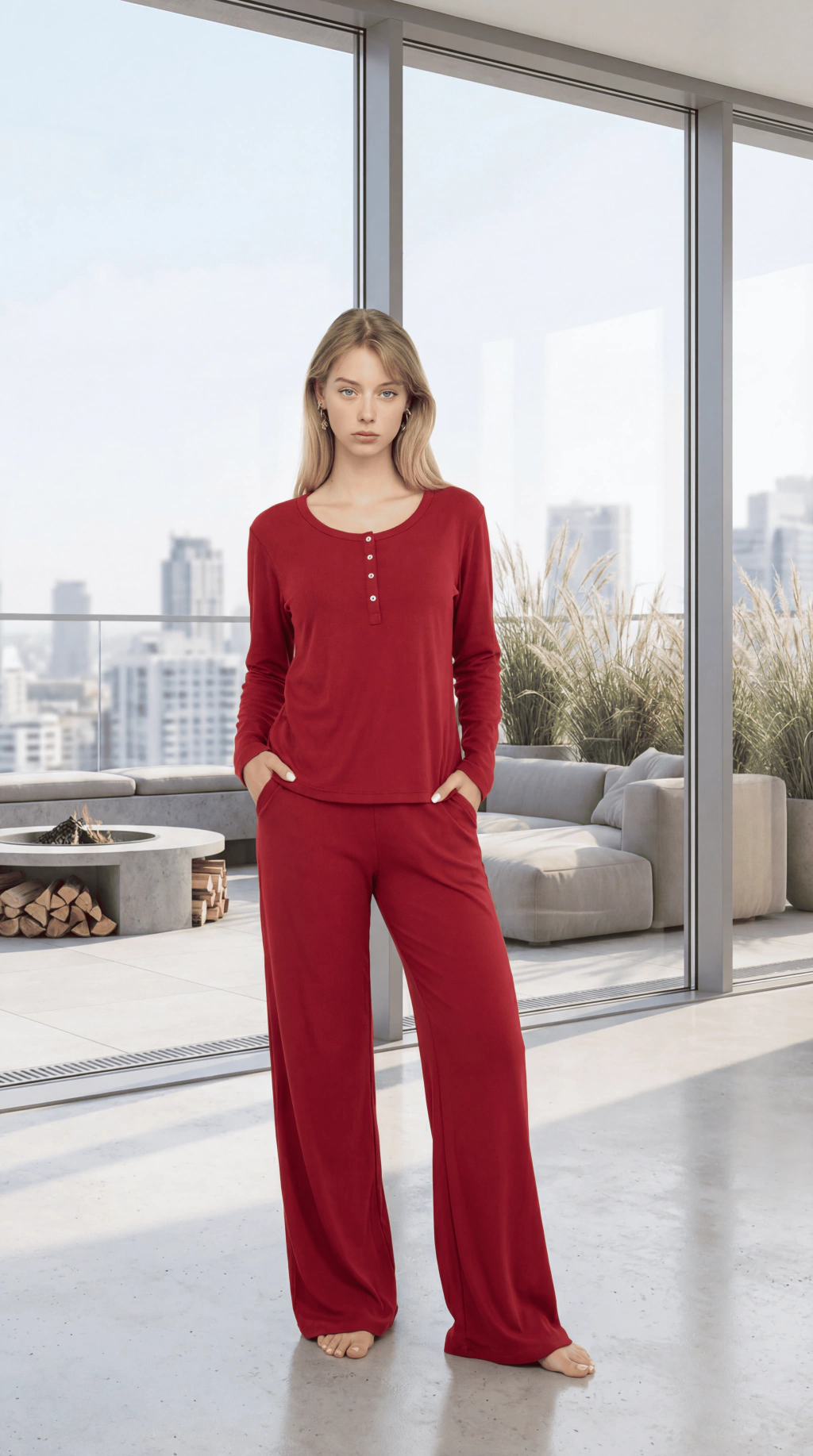 ANDRESSA P9076 PIJAMA MANGA LARGA CON PANTALON ANCHO DE MORLEY