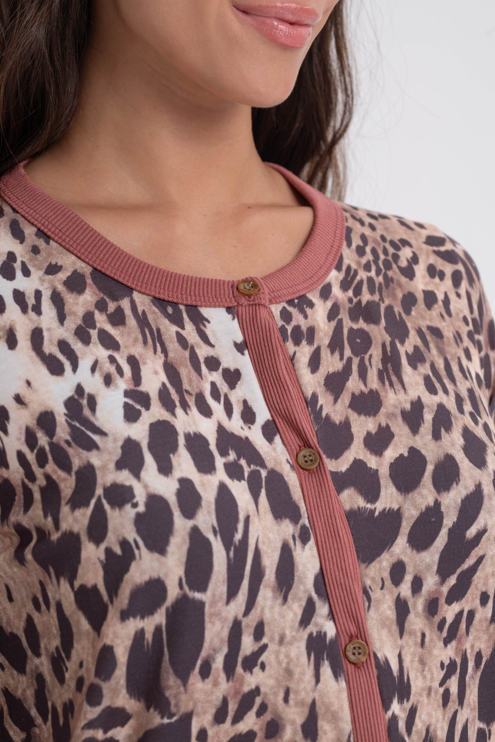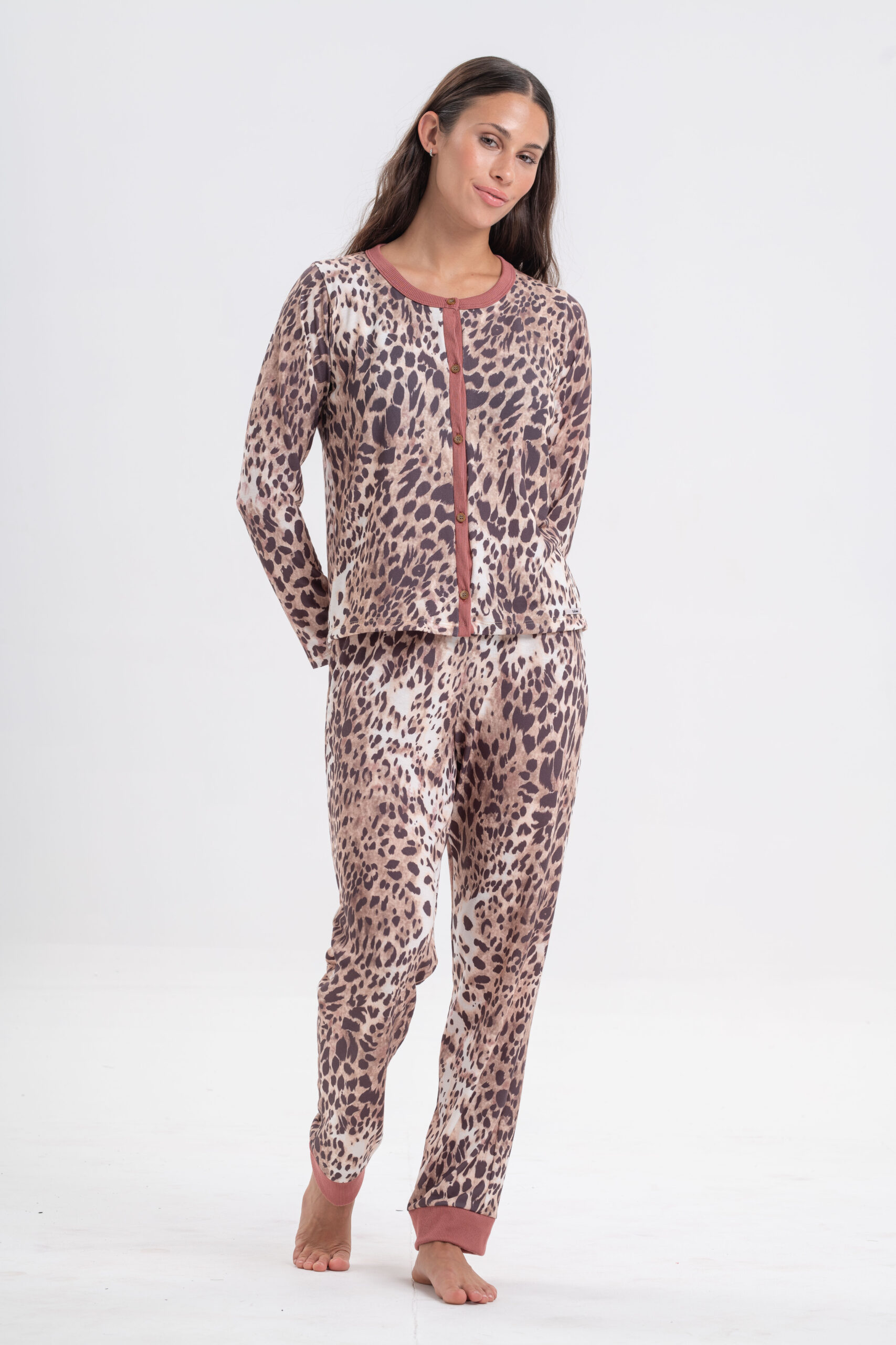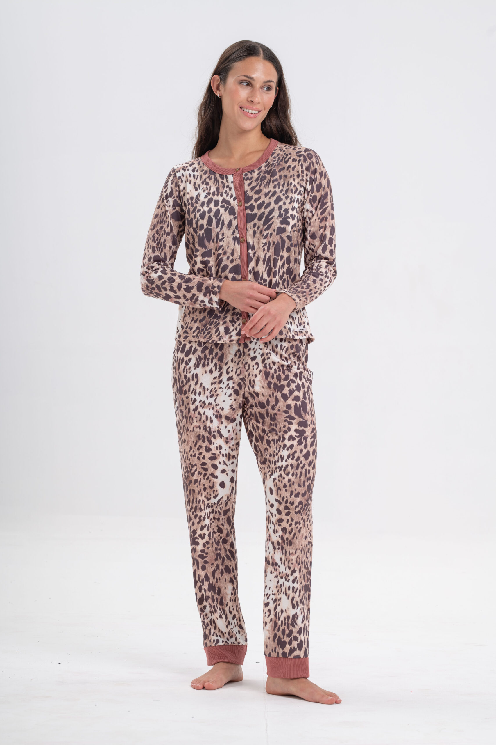 DOLCISIMA 1551 PIJAMA ABOTONADO ESTAMPADO Y CASACA ESCOTE U