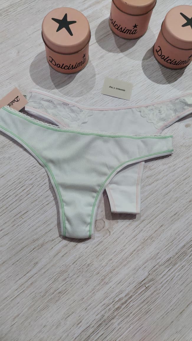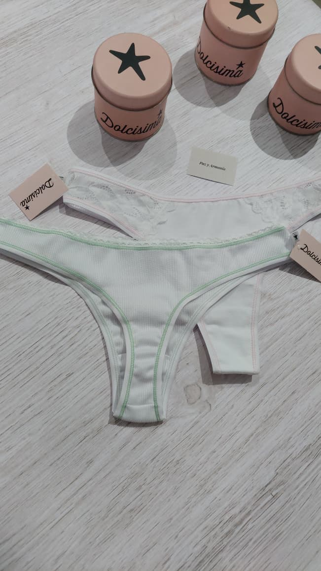 1 de algodón y lycra con puntilla y la otra de morley de algodón-