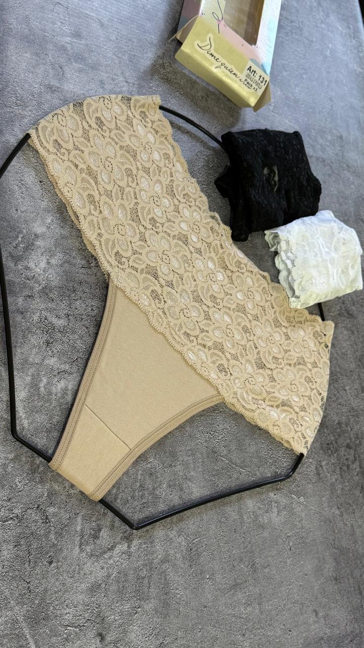 DQE 131 PACK X3 LESS DE ALGODON CON PUNTILLA ANCHA EN CINTURA