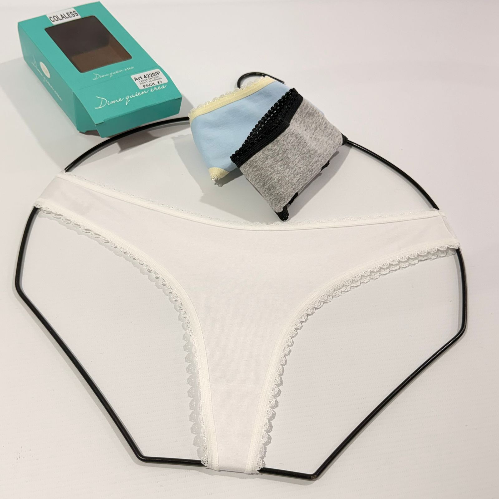 DQE 4220 PACK X3 LESS ENTERA DE ALGODON LISO CON ELASTICO PICOT EN CINTURA Y PIERNAS
