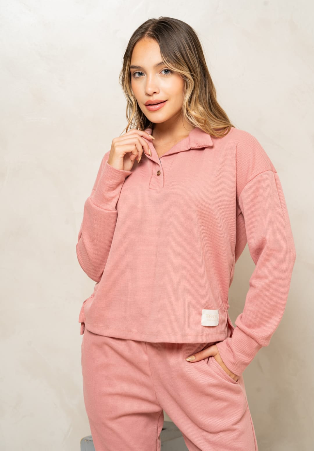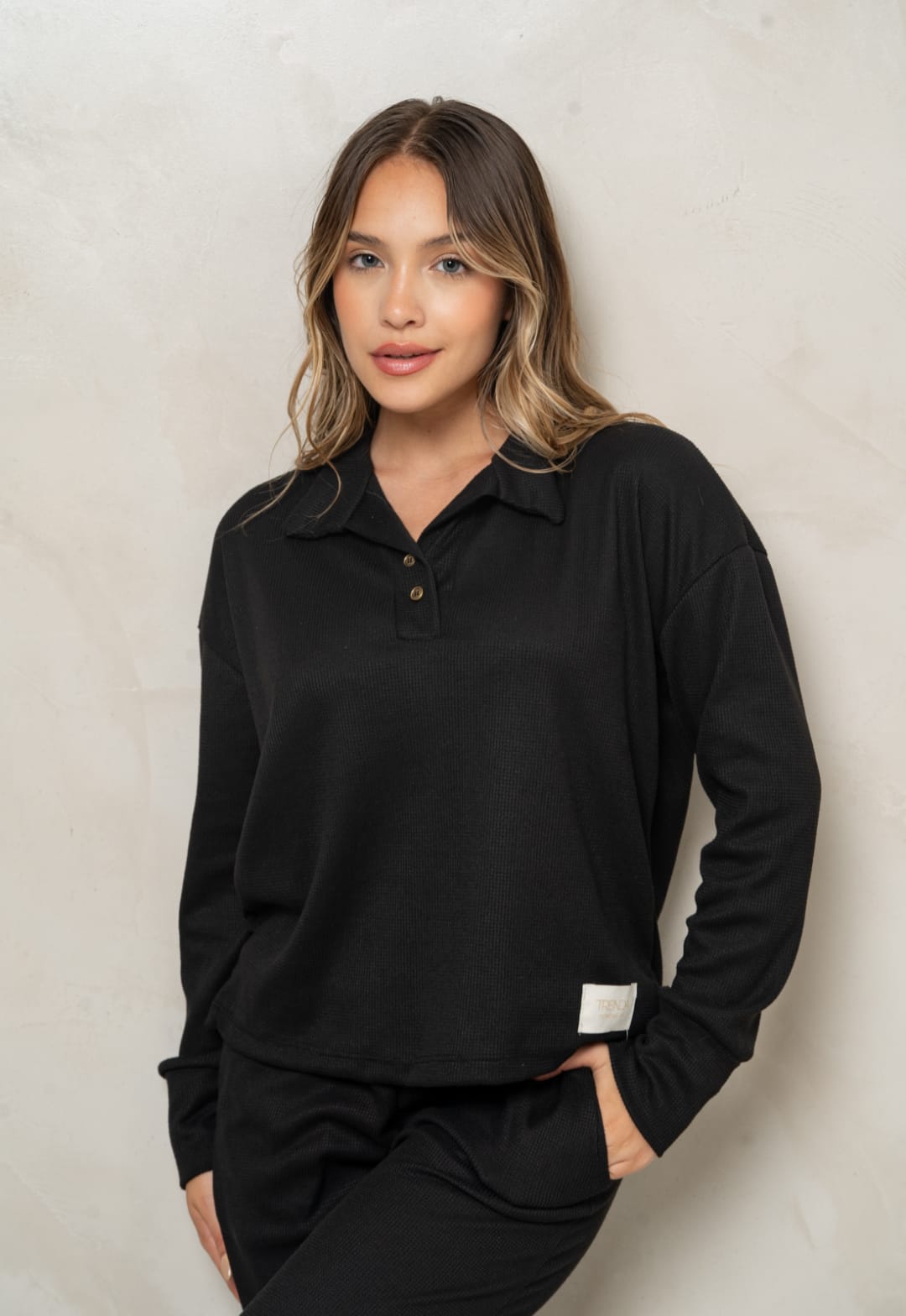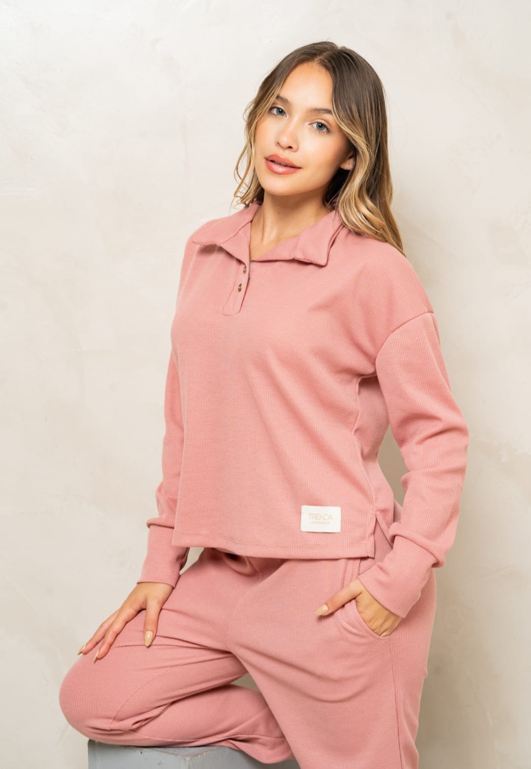 TRENDA 5607 SET PIJAMA REMERA POLO Y PANTALON WAFFLE